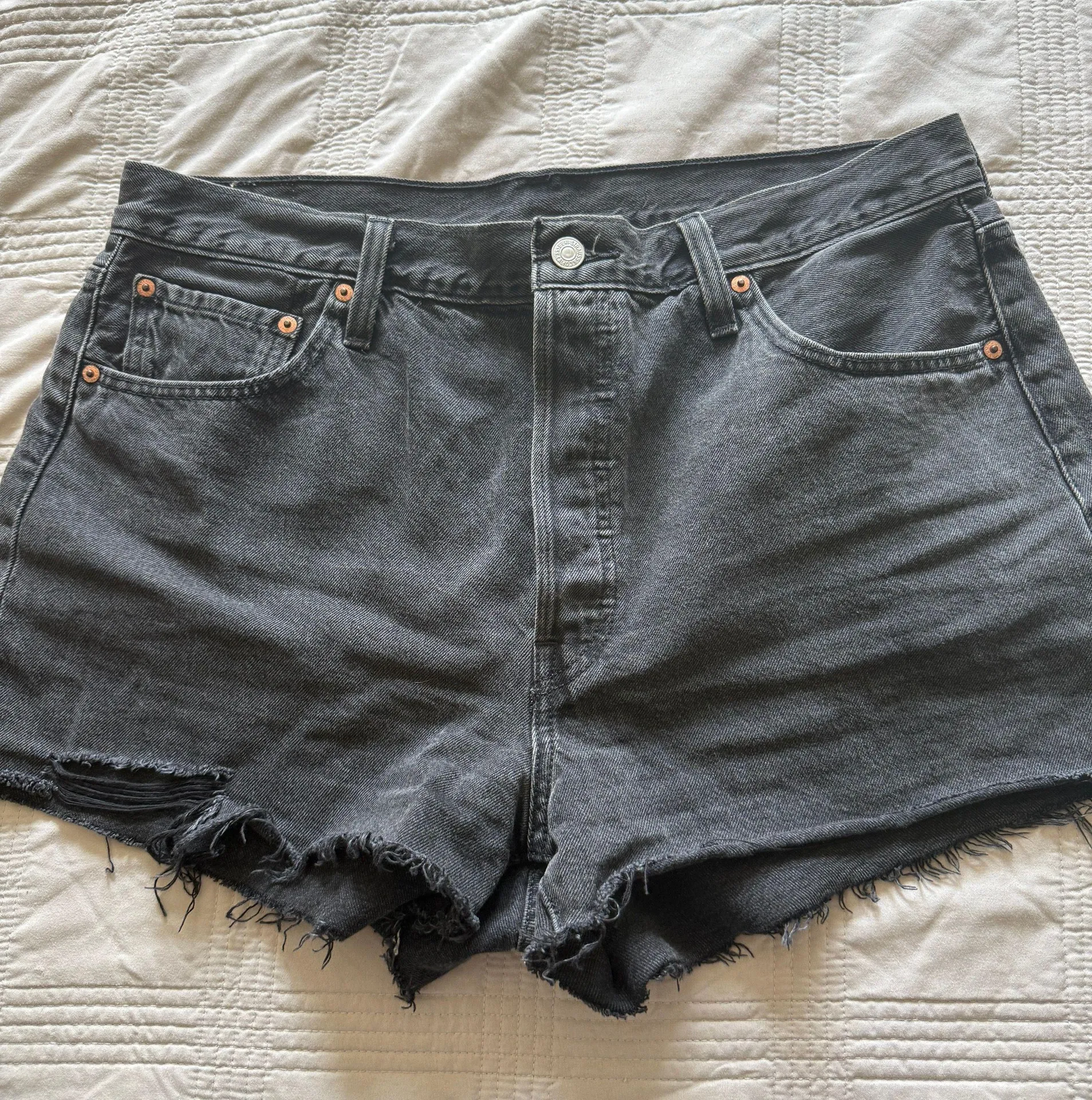 Black Levi’s shorts, I took the tags off but these are a women’s size 12! Only worn about 3 times, e... Show more