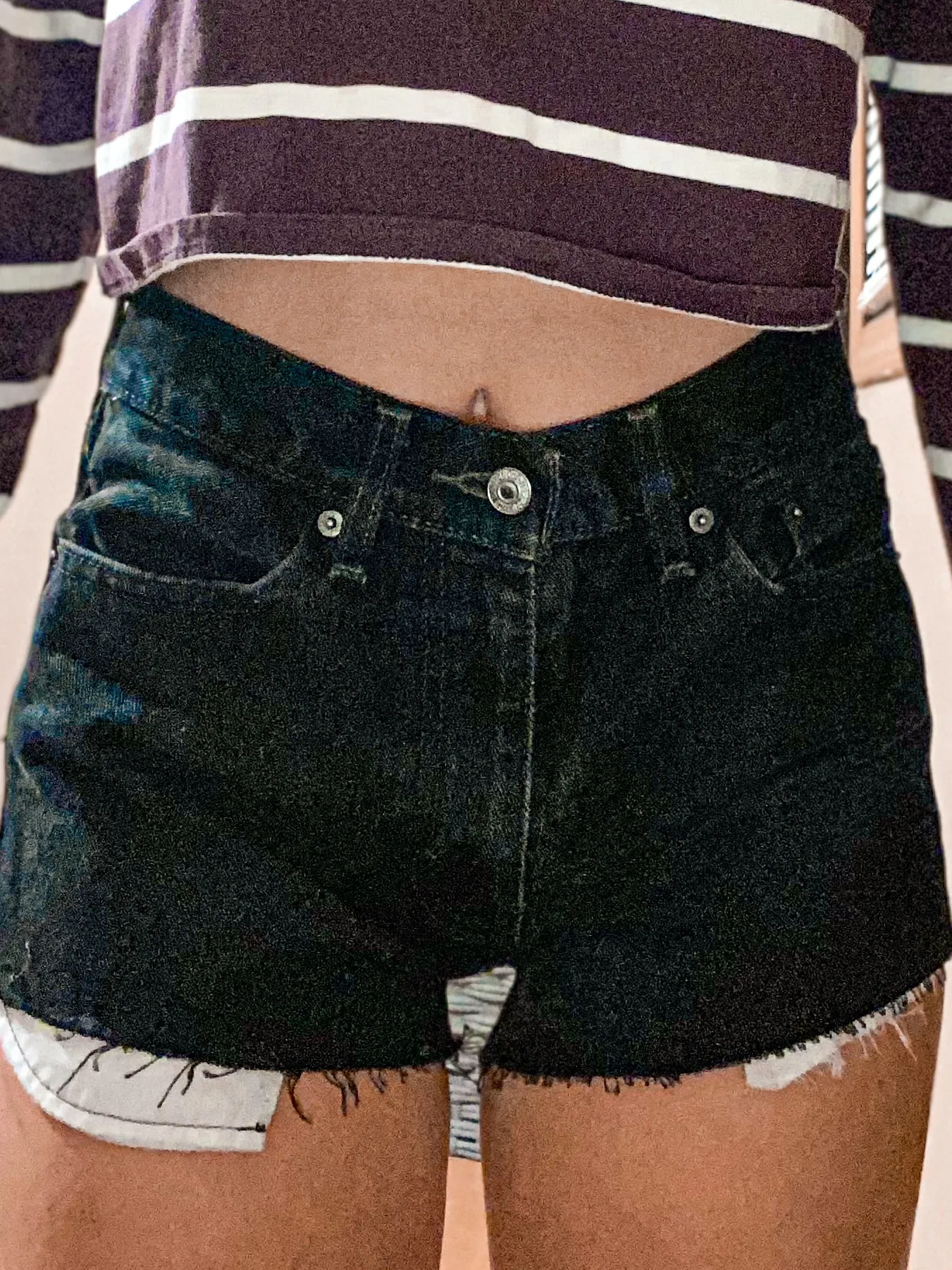 Levi’s black shorts, originally jeans (size 30) I wear a size 2 in shorts and these are slightly big... Show more