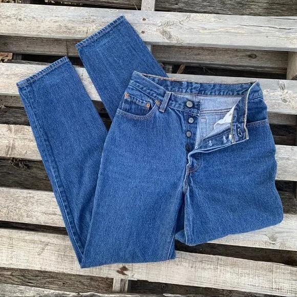 Vintage 80s Ladies Levi’s 501XX red tab button fly jeans. Wedgie fit taper ankle mom jeans. Made in... Show more