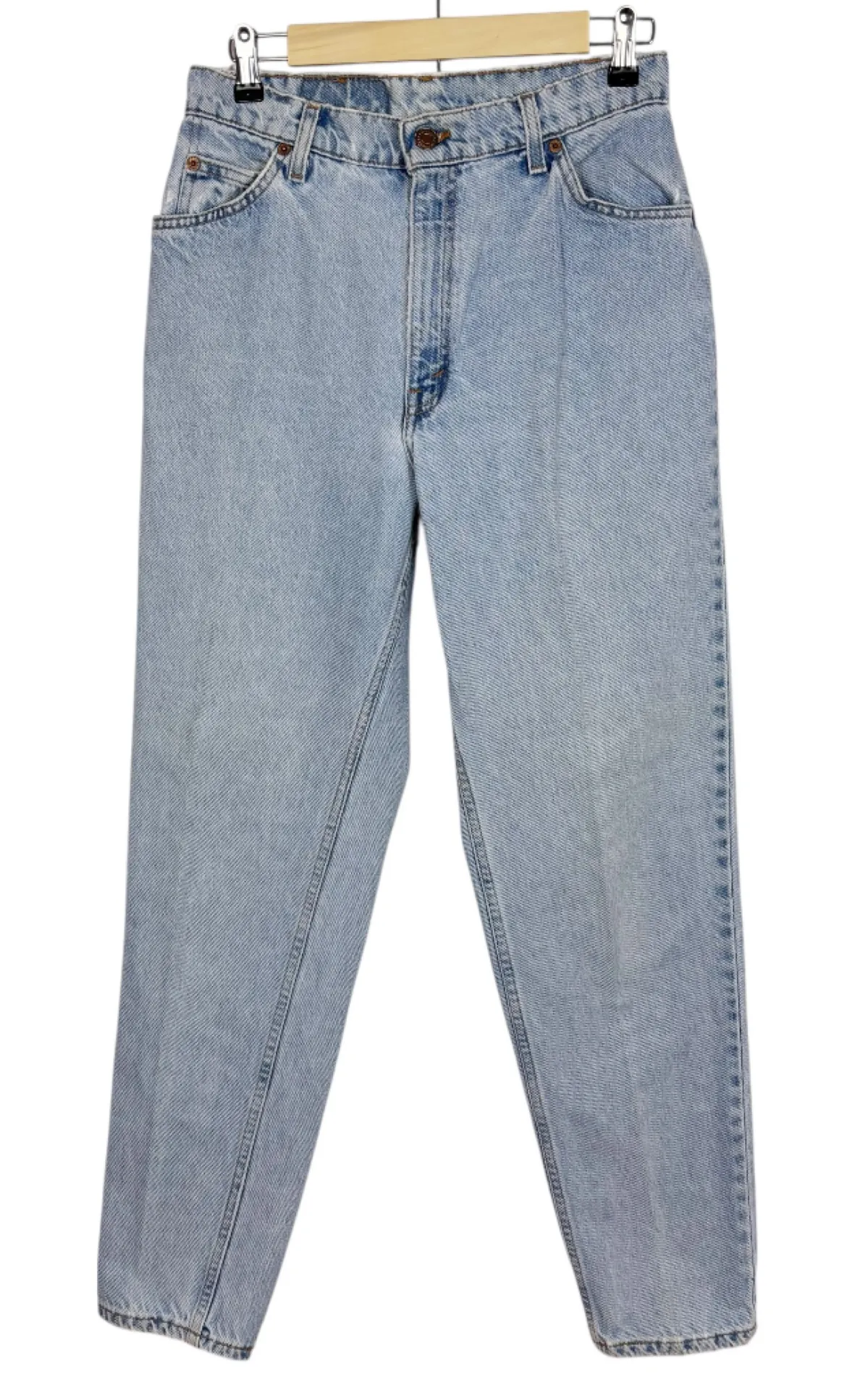 Vintage Levis 950 orange tab denim jeans. Size 12 Relaxed tit. Tapered leg. Light wash. Good conditi... Show more