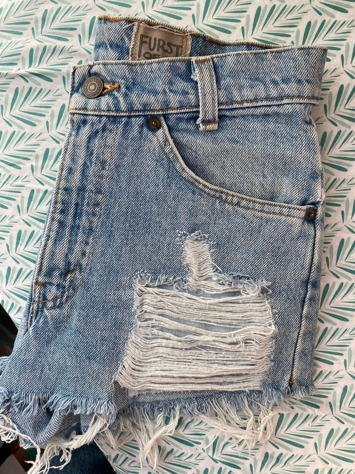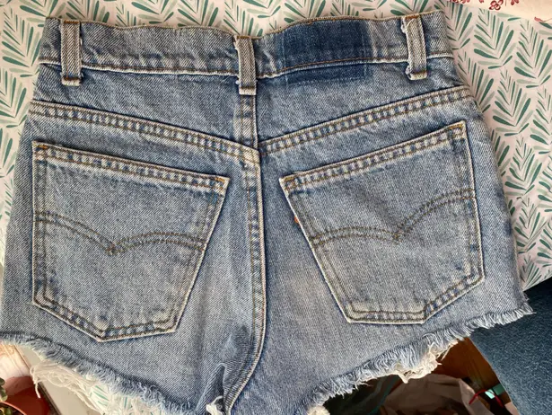 Vintage faded blue cutoff shorts 10.5 in front drop 13.5 back drop 10 in out seam 2 in inseam Dis... Show more