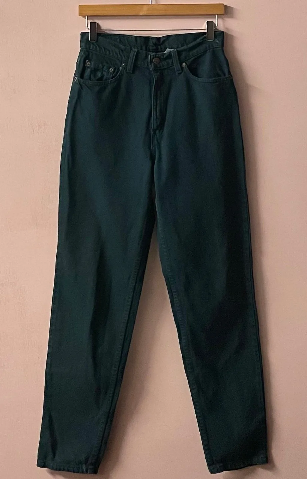 Classic vintage Levi’s tapered leg jeans in a beautiful hunter green color. Has slight distressing s... Show more