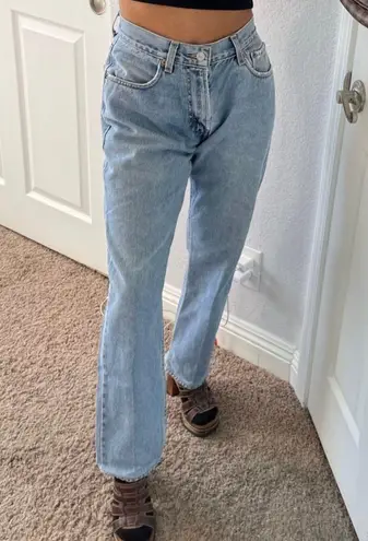 Good condition Gently worn Mid rise Light blue wash Straight leg Regular Fit Some stains Vint... Show more