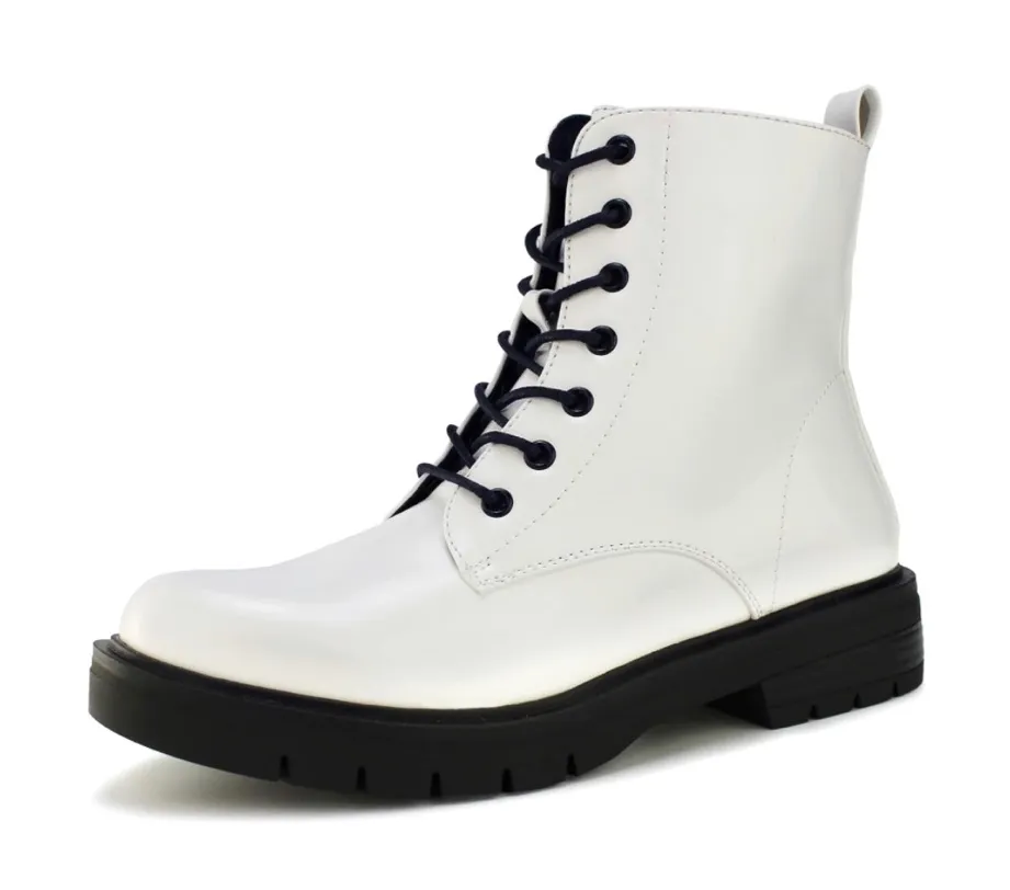 Product details About this item Fabric Type 100% Synthetic Sole Material Rubber Shaft Height 5 inches Outer Material Rubber About this item Synthetic vegan leather upper 7 hole lace-up closure on a hightop boot design Lightly padded collar and tongue for extra comfort Lightly cushioned footbed for excellent comfort Durable rubber lugged outsole for added traction Description Add bold style to your look with these women’s combat boots. The durable rubber outsoles have extra deep treads to add traction and to give any outfit a bit of subtle, yet rugged flair. Whether you’re rocking these bootss with jeans, shorts, or even a sundress, you’ll be feeling your best.