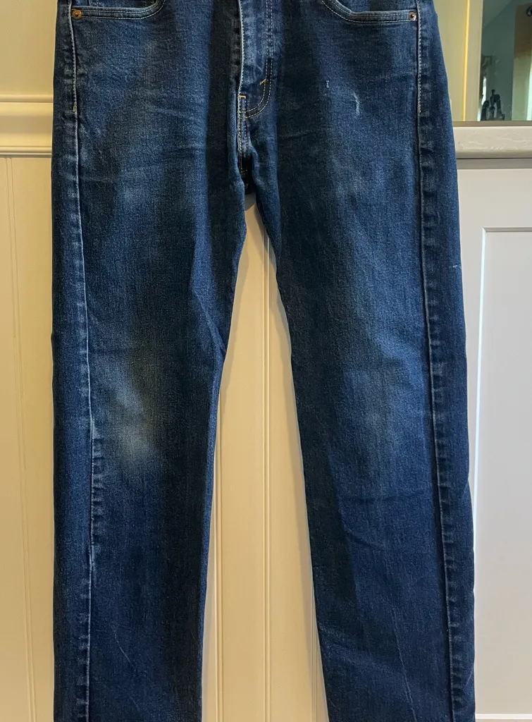 Timeless straight fit jeans by Levi's. Rich color and durable material. In great condition.