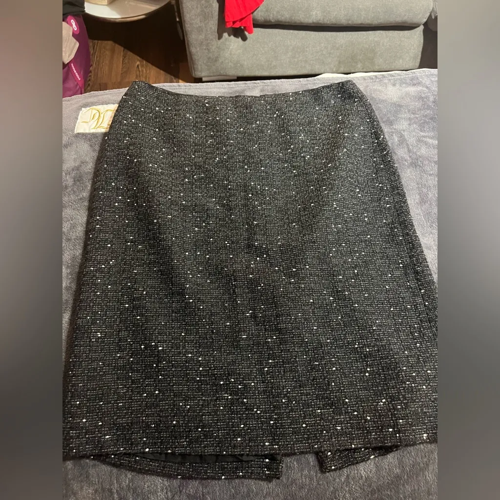 Chic charcoal tweed pencil skirt. Perfect for professional settings. Timeless and versatile.