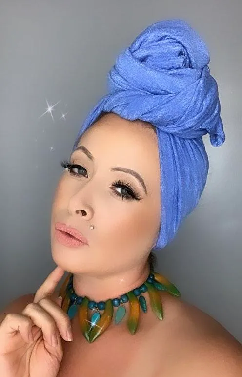 May have a few light stain defects. Super stretchy & lightweight so it’s easy to tie hair up as so in the photos! I’ve used this look for my pinup costumes for artists. Originally $32 60x42” • Comes from a smoke & pet free home! •No holes, no rips or tears. Ready to ship 2-3 days. Ask questions if needed. No returns or Cancellations.