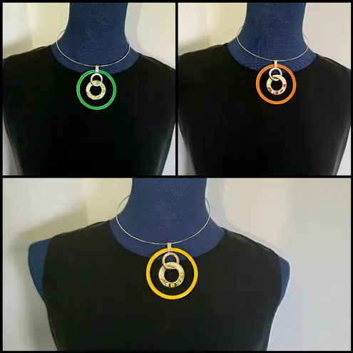 Beautiful necklace and earrings set Silver tone Choker Removable pendant has yellow enamel and crystal stones Choker is very flexible and comfortable Thin silver tone circle hook earrings Super pretty set Also available in orange and green @B casual dressy work office simple classic timeless style everyday simple mod yellow silver