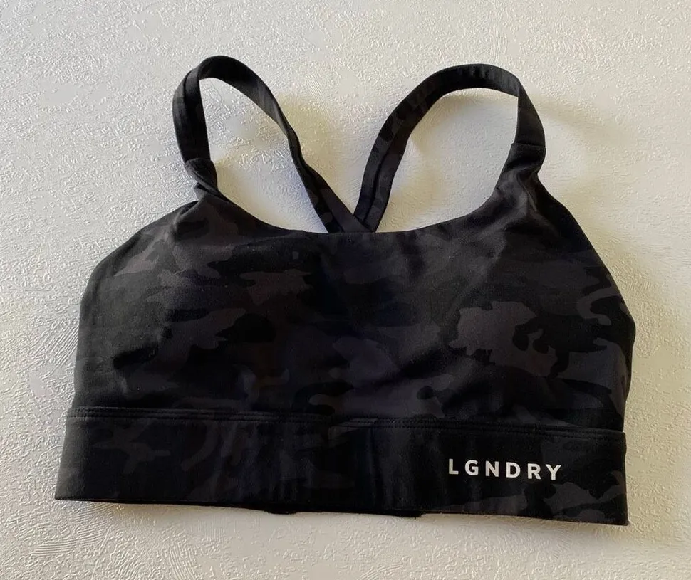 LGNDRY black camo sports bra in size XS. Features a sleek camo print, stretchy nylon-spandex blend, and supportive crossback straps for comfort and movement. Perfect for workouts, yoga, or casual wear. Great preowned condition with no flaws noted. Pet-friendly & non-smoking environment Fast shipping 🚚 Bundle to save more 💕 Open to offers 💌 Any questions? Just let me know! 😊