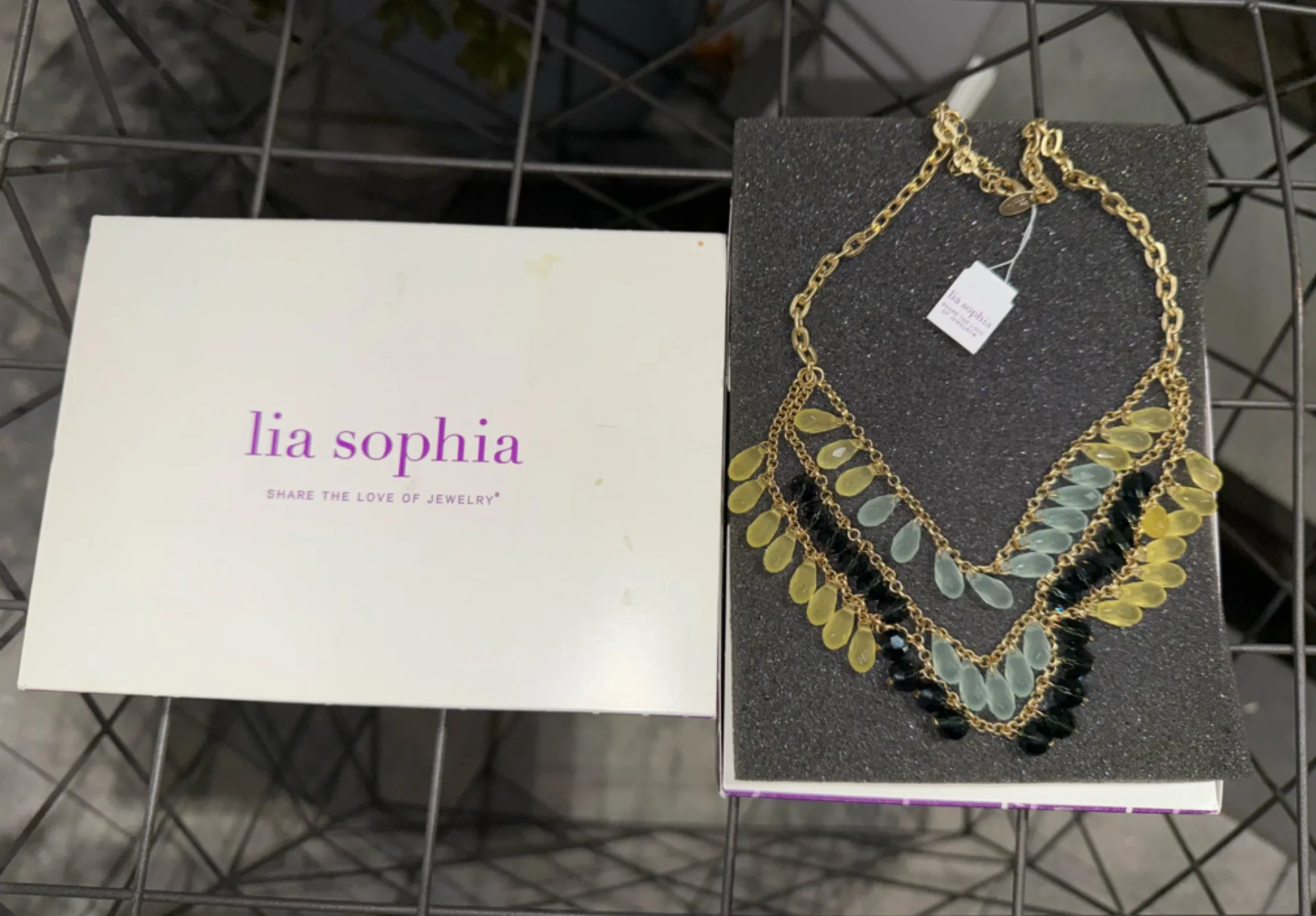 Lia Sophia Layered Bib Necklace Yellow Blue Black‎ Cascading Teardrop Beads - $21 - From ivette