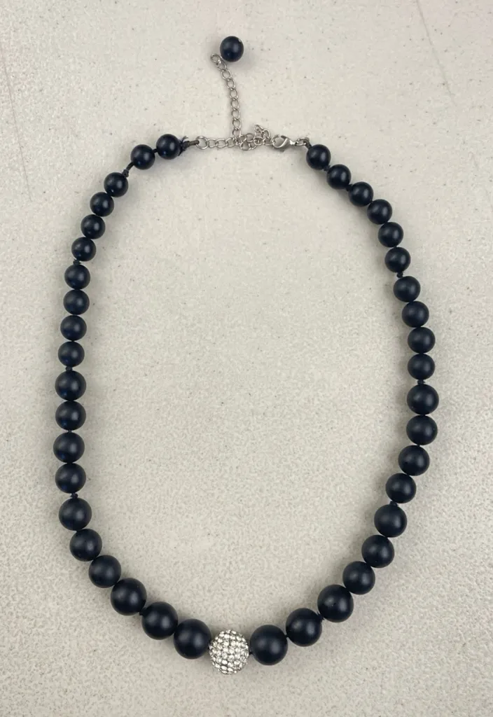 Elevate your daily style with this exquisite Vintage Crystal Rhinestone & Black Resin Bead Necklace from the iconic 90s era. Each chunky strand captures the essence of luxury, blending shimmering crystals with bold black resin beads that create a striking contrast, perfect for both day and night. Slip into this breathtaking accessory and embrace the confidence it brings—the perfect statement piece that transforms any outfit into a celebration of individuality and elegance. NWOT, Used as display item only! From a clean, smoke & pet free home!!
