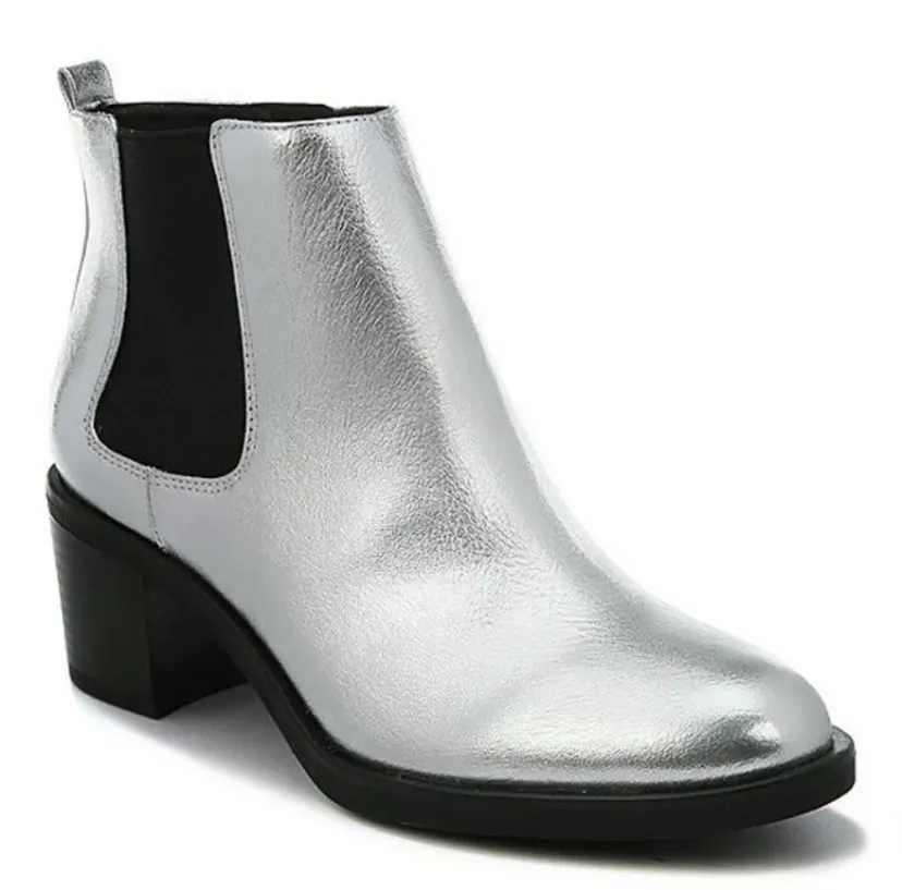 Libby Edelman “Madrid” silver booties. Heeled ankle boots, pull on style! A stellar statement piece!... Show more