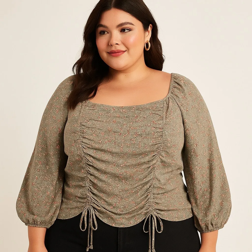 Liberty Love Floral Ruched Peasant Top Sage Green Cottagecore Boho Blouse Square neck, puff sleeve,... Show more