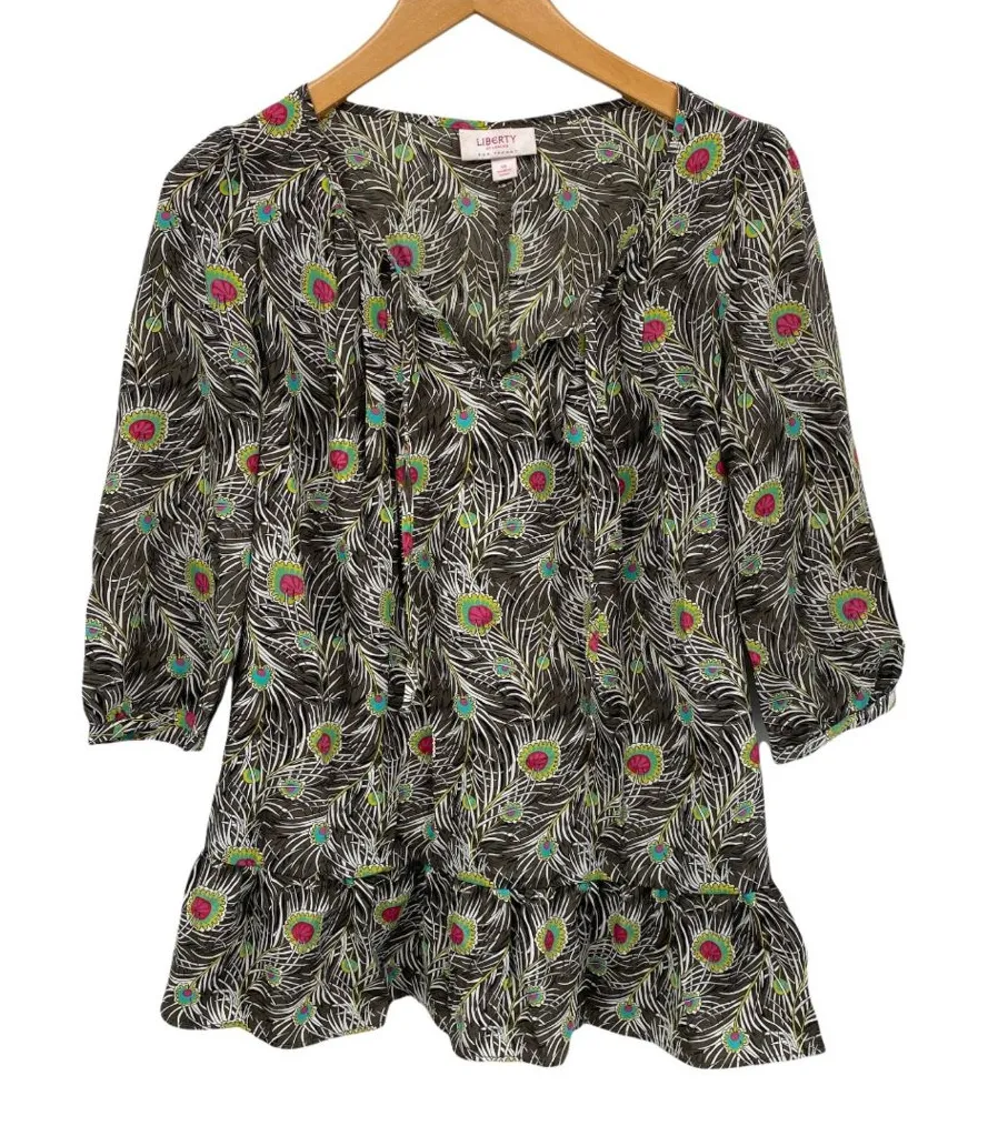 Liberty of London for Target Women XS Peacock Feather Print Popover Blouse Peplum Hem Polyester Brow... Show more