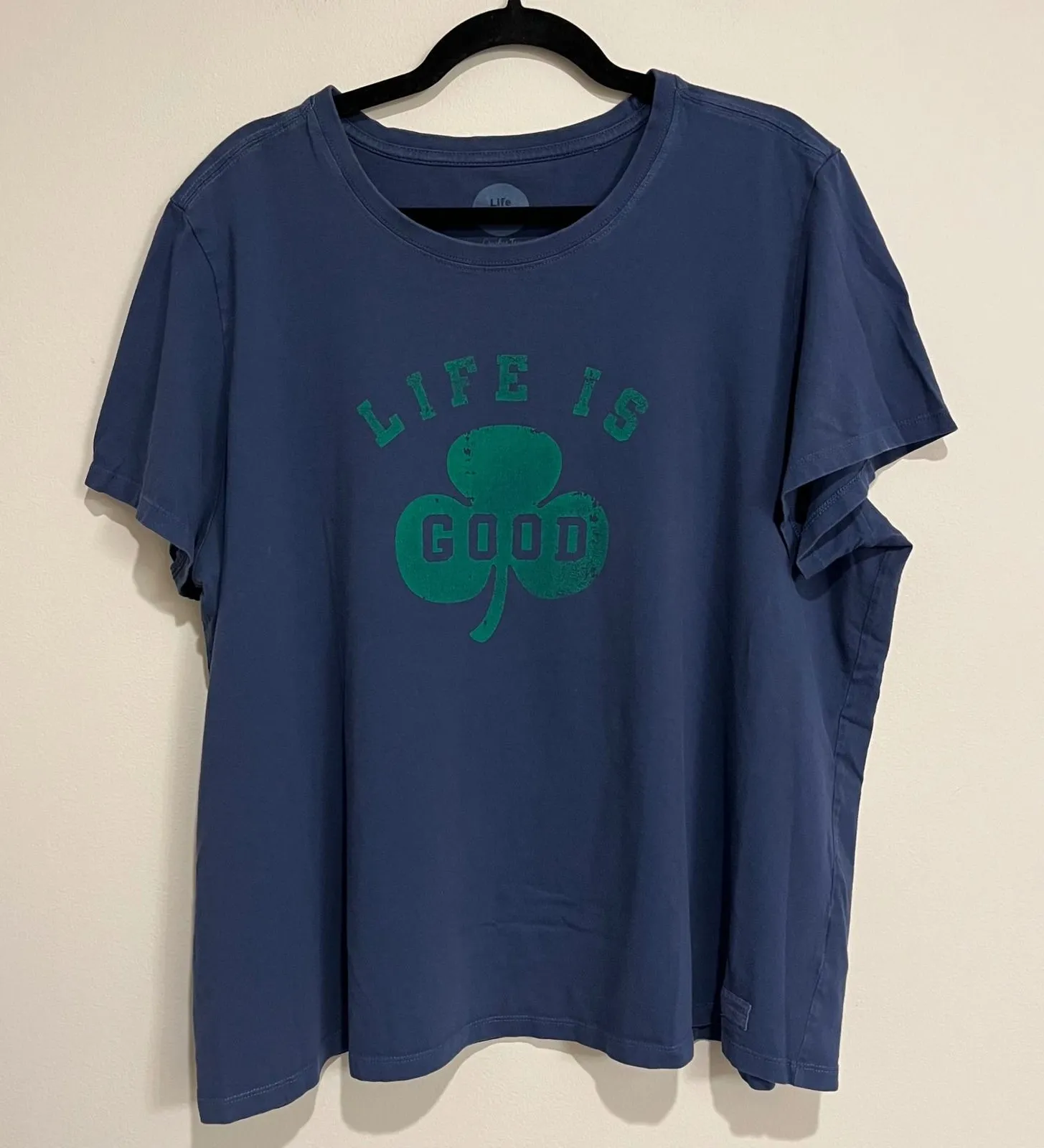 Life is Good Crusher Tee Crew Neck Short Sleeve Blue with Clover Graphic Womens XXXL Approximate... Show more