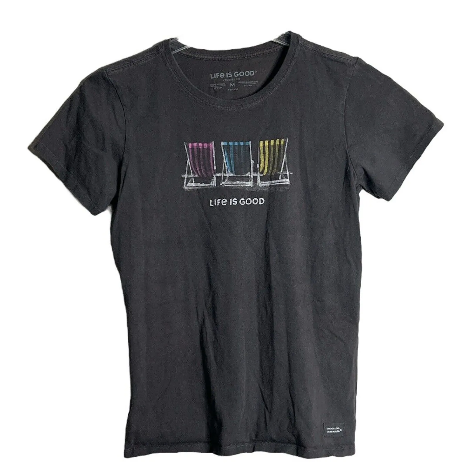 Life is Good Shirt Womens Medium Gray Crusher Gray Beach Chair Graphic Casual Women's Size Medium... Show more