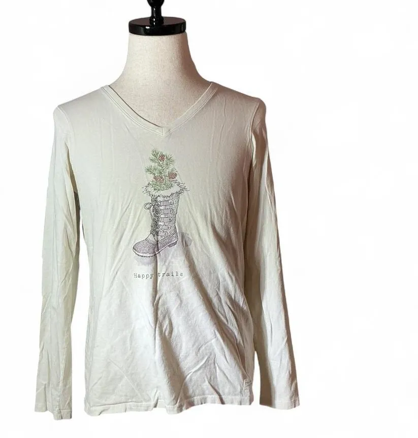 Life is Good women's classic fit long sleeve t-shirt in white featuring a charming graphic of a wint... Show more