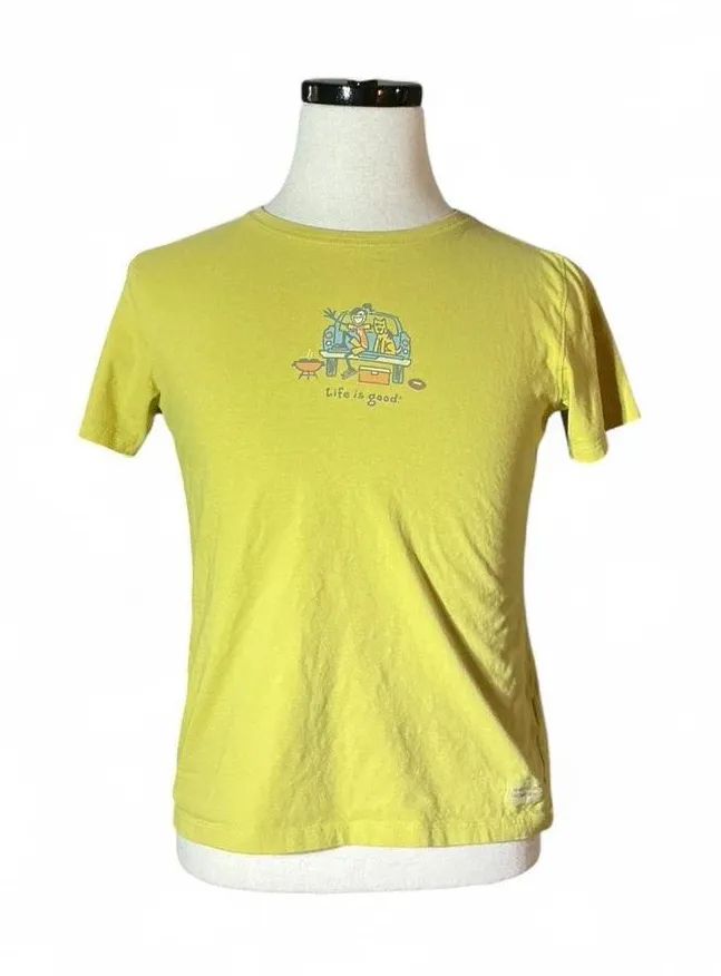 Life is Good relaxed fit t shirt in yellow with a fun graphic print. This top showcases a charming... Show more
