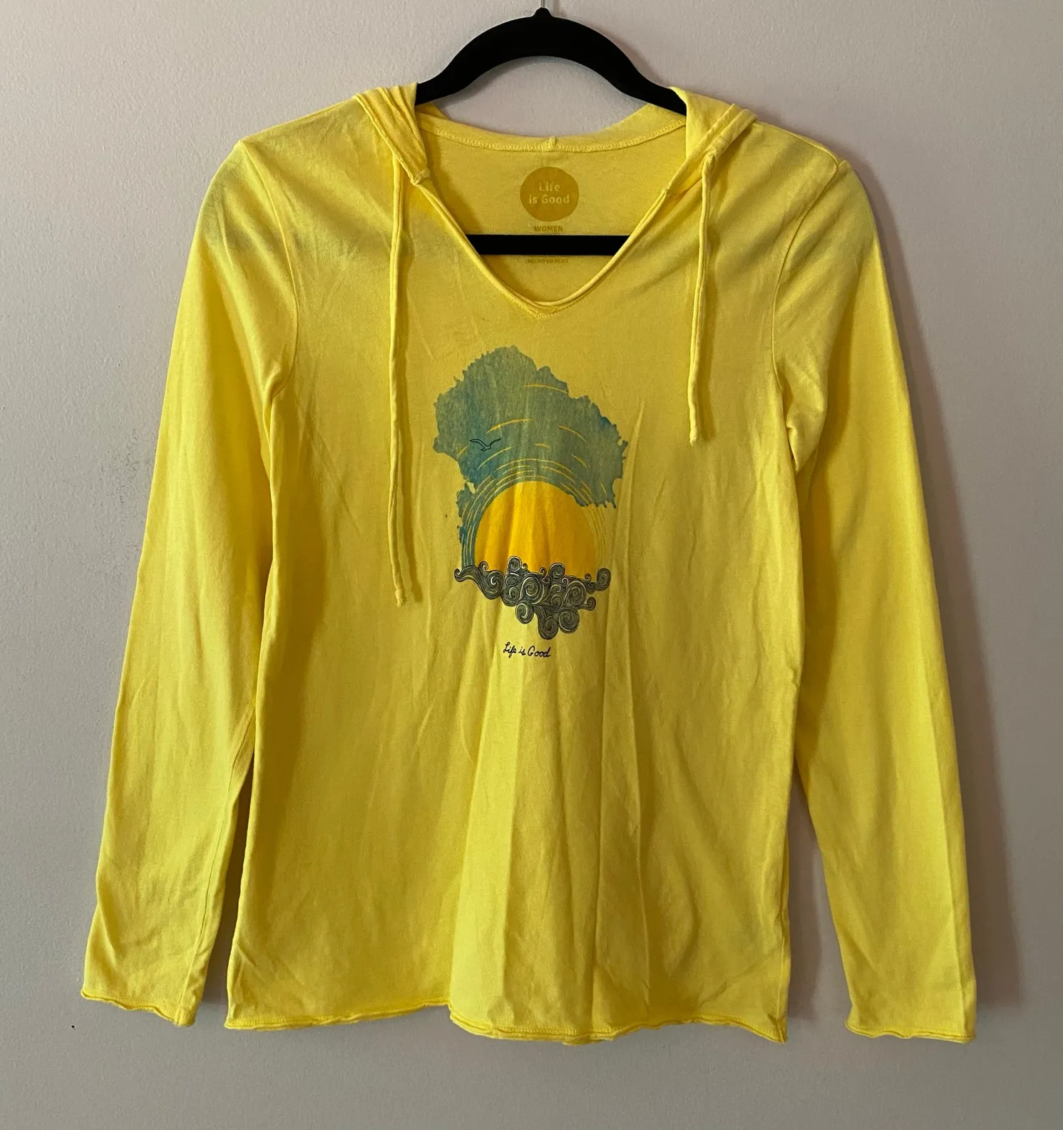 Life Is Good Women's size XS Yellow Long Sleeve Hooded Top Sunset Beach. Life Is Good brand women's... Show more