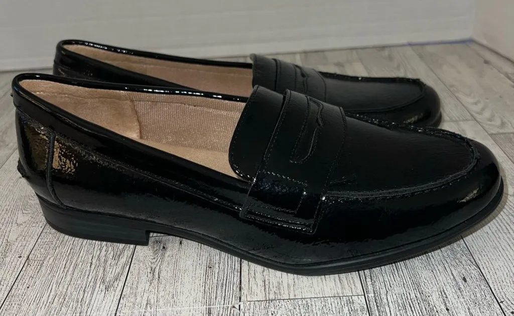 The LifeStride Madison Black Patent Faux Leather Penny Loafers in size 6.5 WIDE are a stylish and ve... Show more