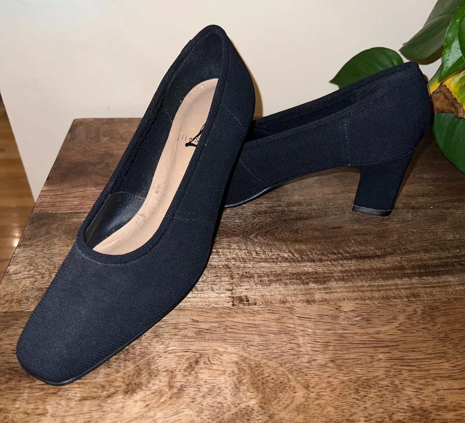 Measurements: • Heel Height: Approximately 2 inches Style: Pump Department: Women Upper Material: Fabric, Synthetic Heel Style: Block Type: Heel Toe Shape: Square Toe Pattern: Solid Heel Height: Mid (2-2.9 in) Closure: Pull On EU Shoe Size: 37.5 Features: Comfort, Stretch, Lightweight Keywords: Lifestride women's shoes, black fabric heels, block heel pumps, size 7M shoes, comfortable work shoes, square toe heels, slip on pumps, dress shoes women, casual heels, office shoes, lightweight heels, flexible fabric shoes, all-day comfort