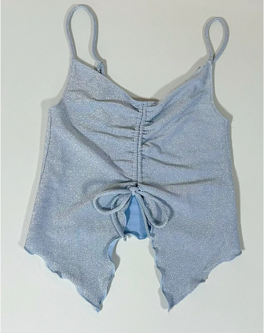 Light Blue Pastel Glitter Ruched Tie-Front Tank Crop Top Shirt Blouse Size XS 🩵 - $40 (27% Off Retail) - From faeriekiss