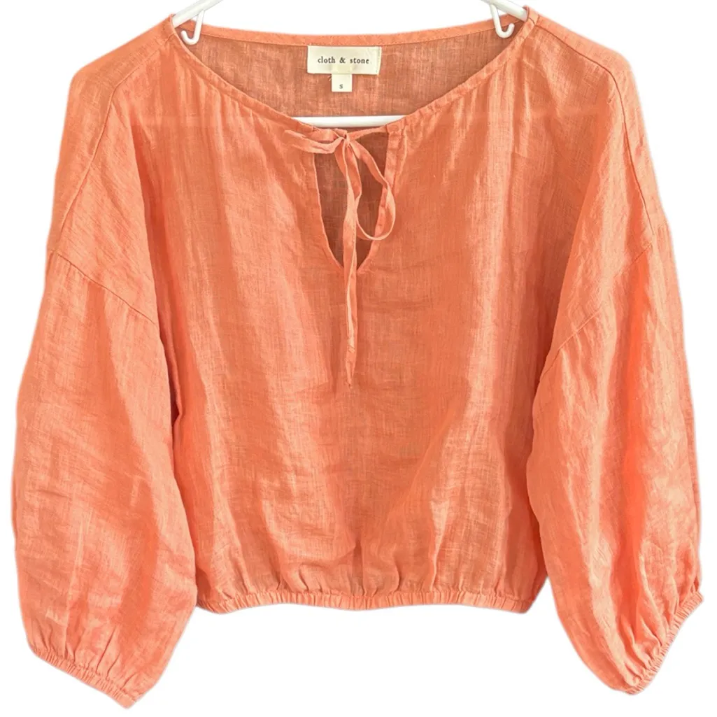 Tried on but never worn; 100% linen; puff 3/4’sleeves with elastic cuff; elasticized hemline; tie ne... Show more