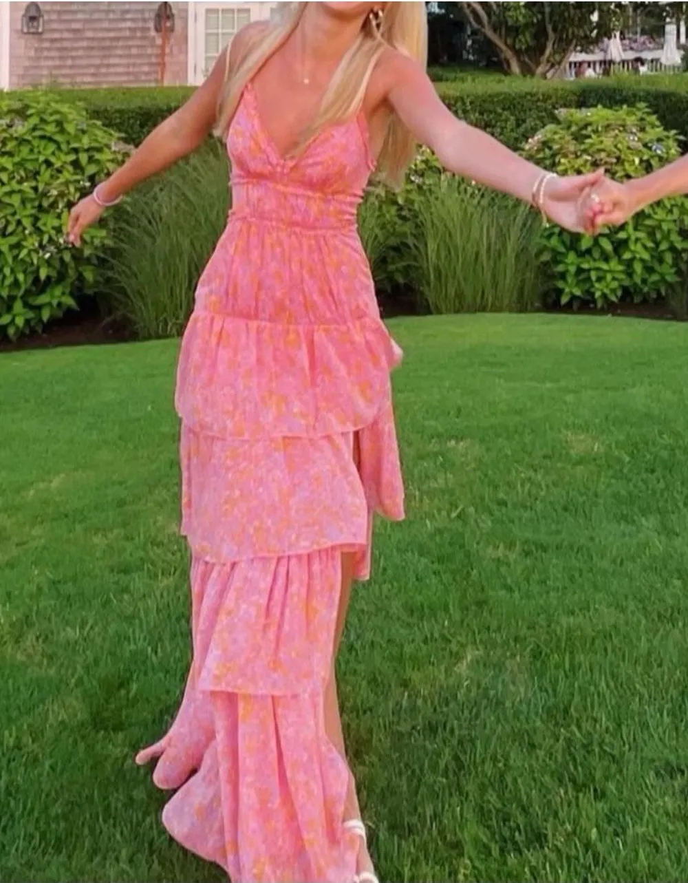 LIKELY Athena Maxi Dress In Floral Multi Print Tiered Chiffon Sz 6 Pink - $148 - From Patchworked
