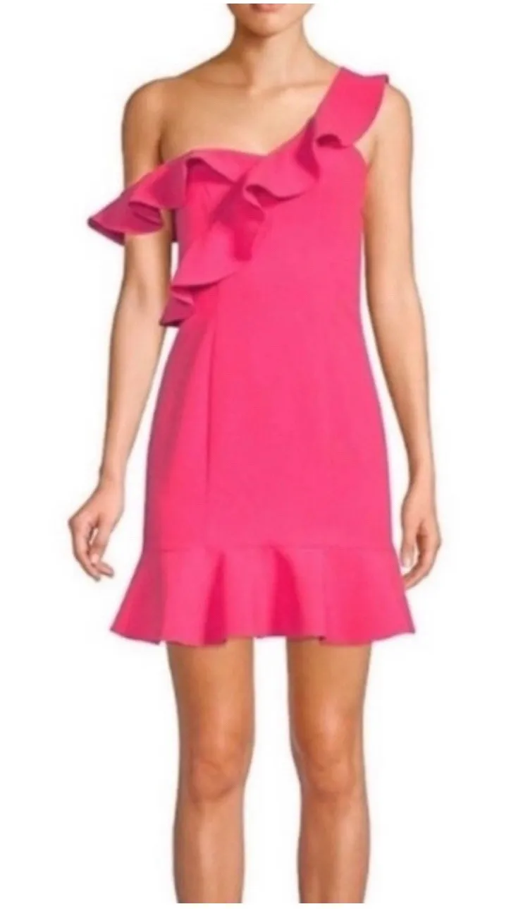 Likely Norvina Dress Pink Ruffle One‎ Shoulder Flounce Mini Women's Sz 2 - $50 - From Patchworked