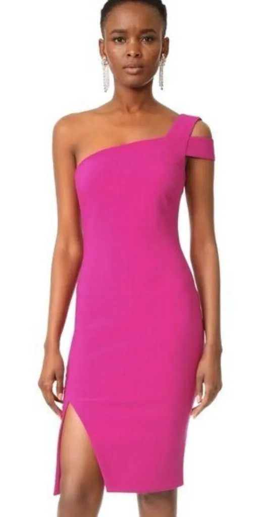 Elegant Likely Packard dress with a one-shoulder design and a stylish side slit. Crafted from a polyester, rayon, and spandex blend for a comfortable fit. • One-Shoulder Design • Side Slit • Size 12 • Polyester/Rayon/Spandex Blend • Fuchsia Color Size: Womens 12 Approximate measurements laid flat Underarm to underarm 19” Waist 16.25” Hips 20” Length 41” Condition: New With Tags Love this dress and was hoping it would fit but I need a size 10 instead. I am happy to provide measurements if they are not already listed!