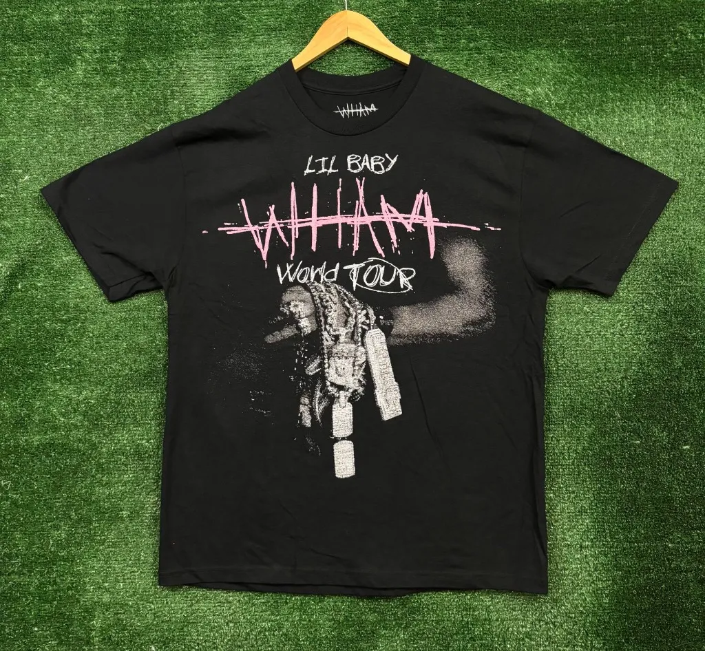 Lil Baby Wham World Tour Hip-Hop T-Shirt Size Extra Large measures 24 inches pit to pit 30 inches long Amazing shirt with graphics on both sides of the t-shirt perfect for fans of the popular rapper Lil Baby New overstock in great condition