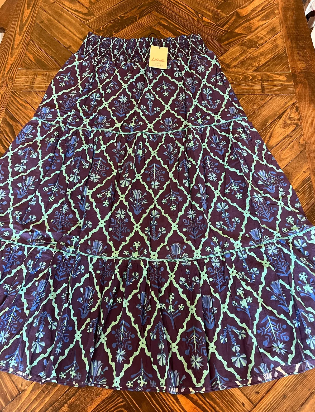 Lilbelle Peasant Cottage Core Tiered Maxi Skirt Women XL Floral Boho Western Blue - $40 New With Tags - From Paige