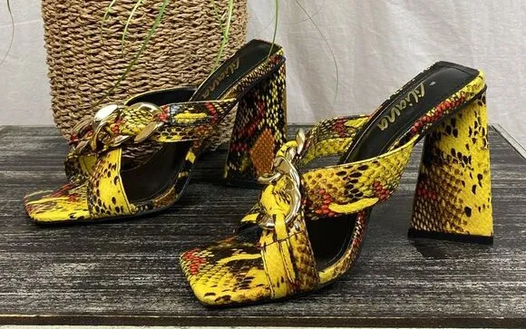 Liliana Yellow & Black Animal Print Chain Square Toe Triangle Heel Shoes 8 - $35 - From Designer