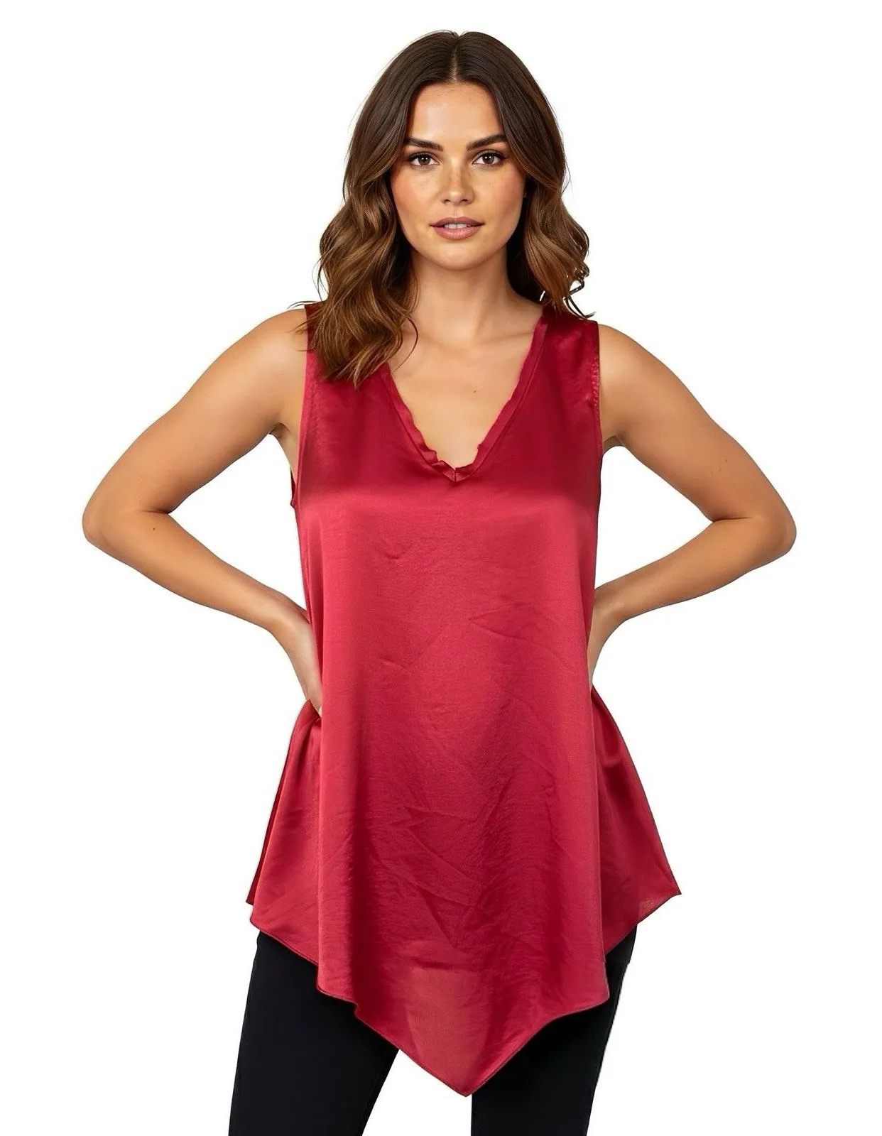 Lilla P Womens Tank Top Size XL Satin Red Shark Bite Hem Holiday Christmas Festival Party Outfit Cocktail Date night Outfit, Valentine's, Boho Bohemian Edgy Deconstructed V-Neck, Wabi-Sabi Detailing Pullover Please note the neckline features a designer raw-edge finish where the fabric has been intentionally cut and left un-hemmed for a deconstructed look. This is part of the style and not a defect or damage. Good condition no stains or other rips. Color may vary due to lighting. Please review pictures for exact measurements and fabric/material tags.You should take your own measurements and compare them to the size chart (if provided) or a similar item you own to ensure the perfect fit. Pre-owned item may have slight shrinkage or stretch.