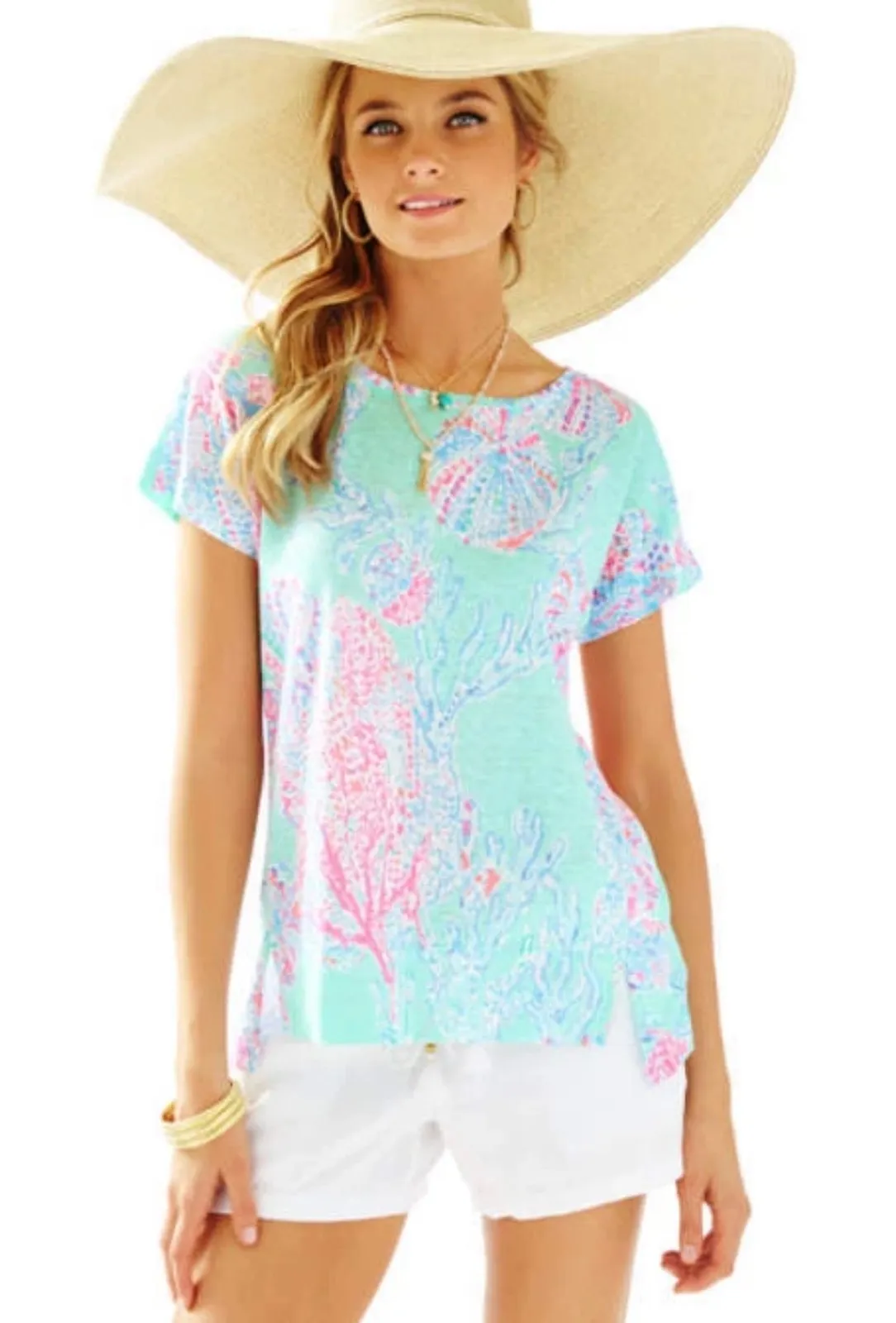 Lilly Pulitzer 100% Linen Mikela Top in Fansea MINTY FRESH M Tropical Nautical Features: Style: Top... Show more