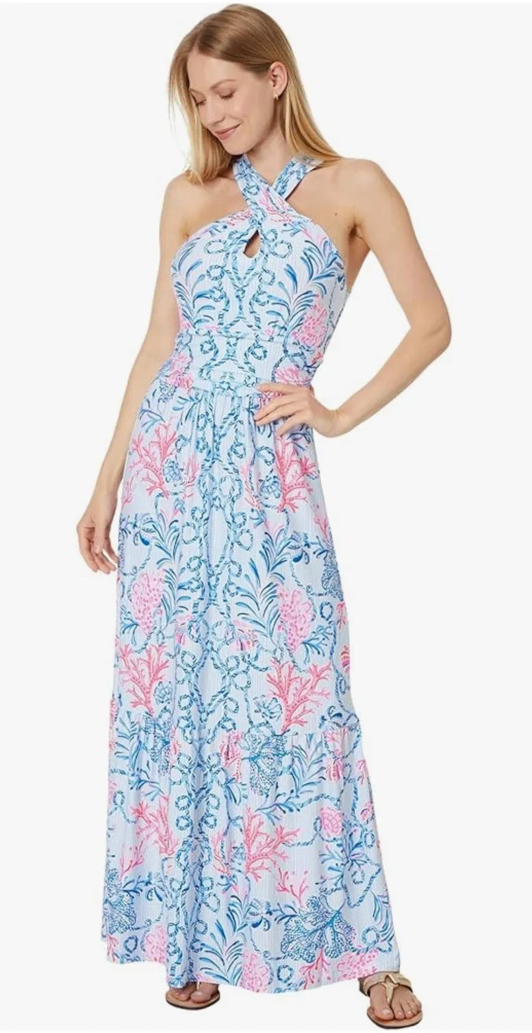 Elevate your wardrobe with this stunning Lilly Pulitzer Montecito padded maxi dress in a beautiful c... Show more