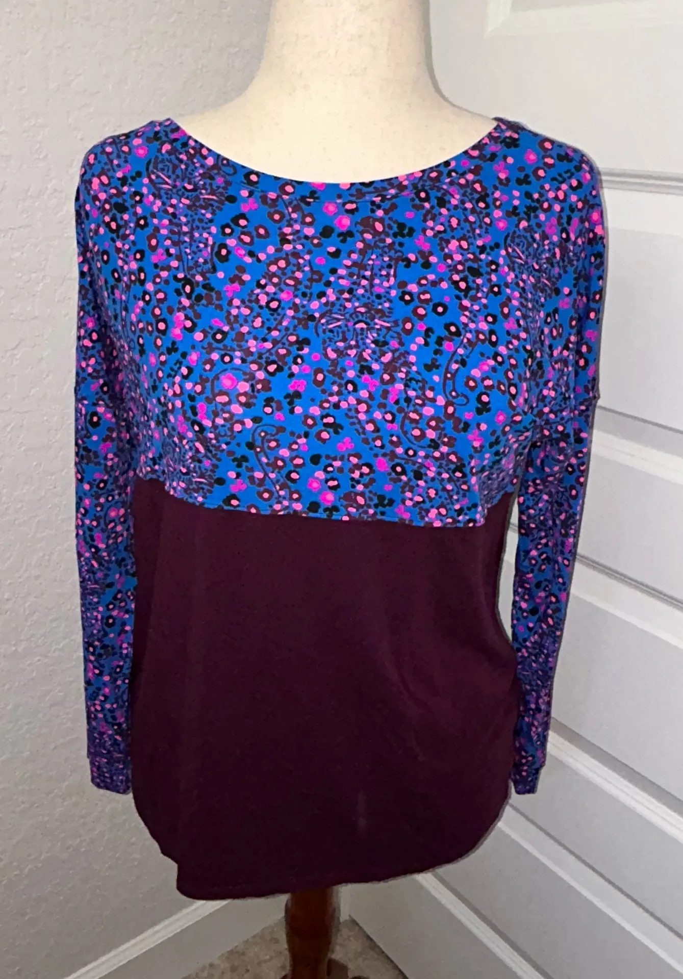 Lilly Pulitzer Animal Print Color Block Long Sleeve Blouse Shirt Top Size M Color Burgundy, Pink, Bl... Show more