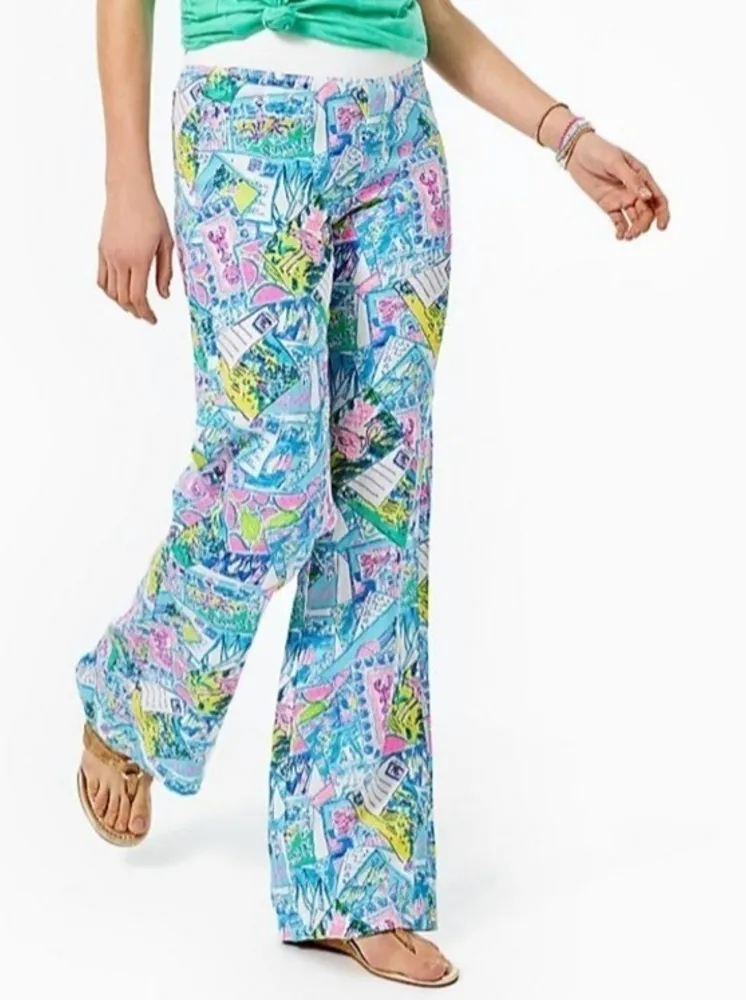 LILLY PULITZER Beach Palazzo Pull On Linen Pants Pop Up Wish You Were Here Size XS NEW •Pull On Pan... Show more