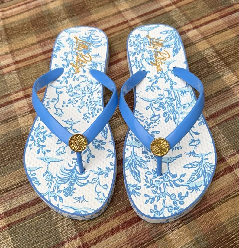 Elegant blue and white floral sandals. Perfect for sunny days.
