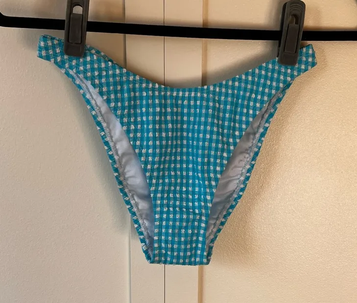 Women’s Lilly Pulitzer Aelin Crinkle Gingham Bikini Bottom - new without tags! -size 2 -turquoise oa... Show more