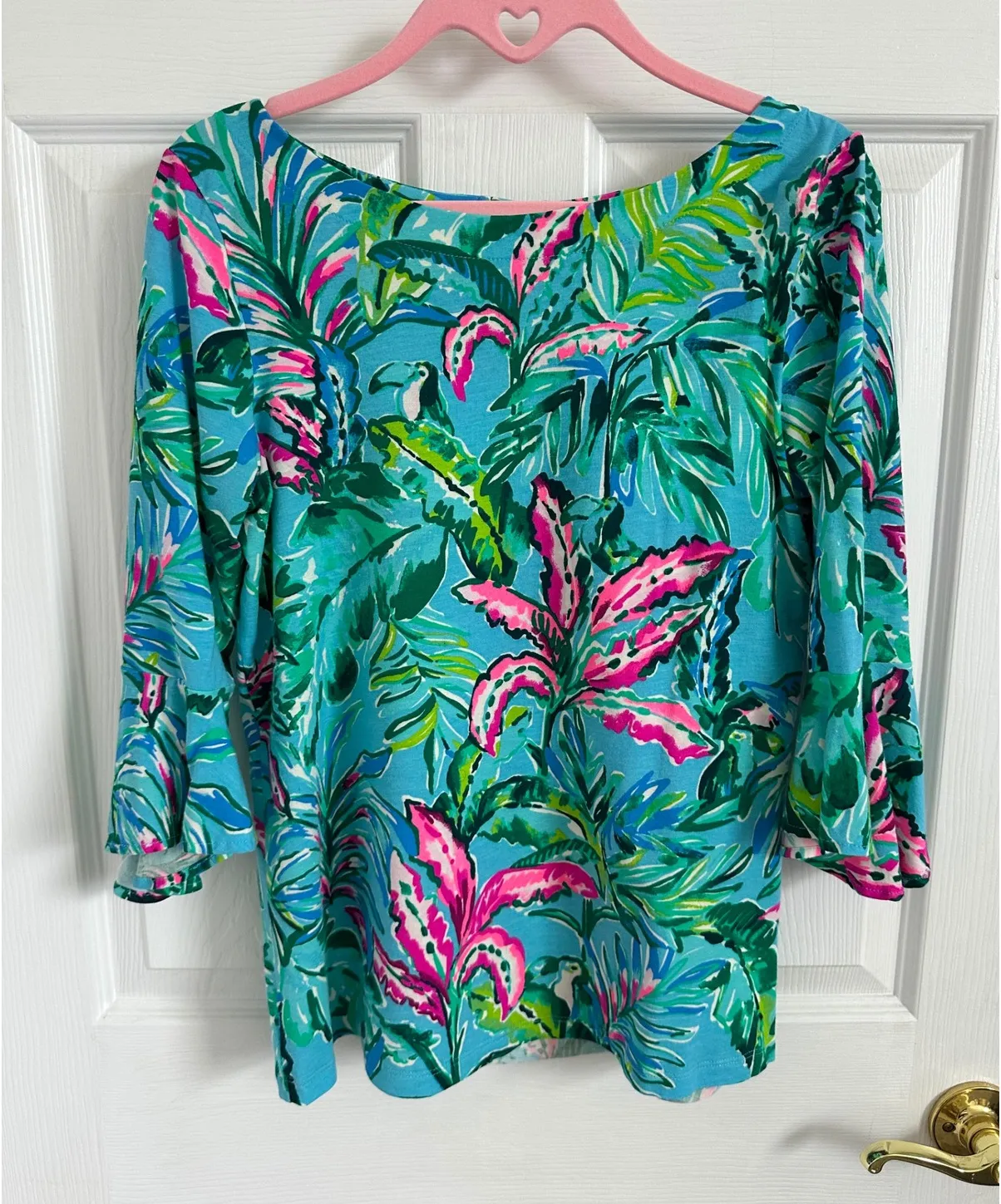 Escape to paradise with this vibrant Lilly Pulitzer top! A burst of tropical energy, this top featur... Show more