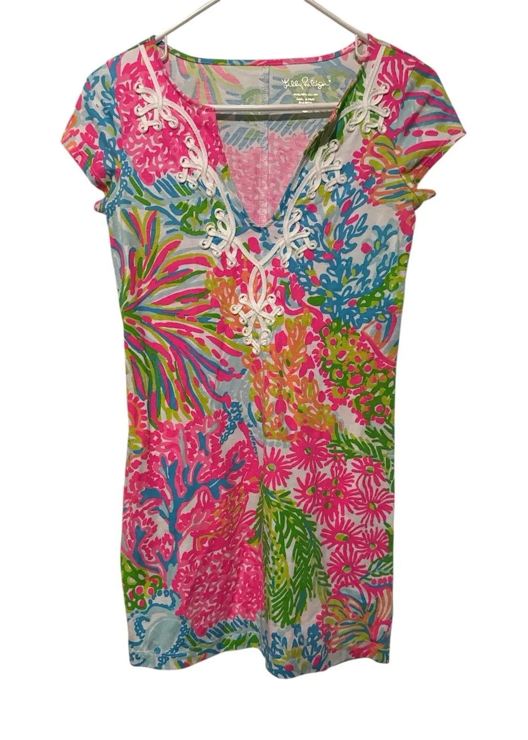 The Lilly Pulitzer Brewster Dress is a stunning tropical-inspired t-shirt dress made from pima cotto... Show more