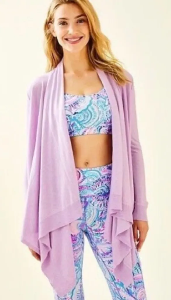 Chic light purple cardigan. Perfect for layering. Soft and stylish.