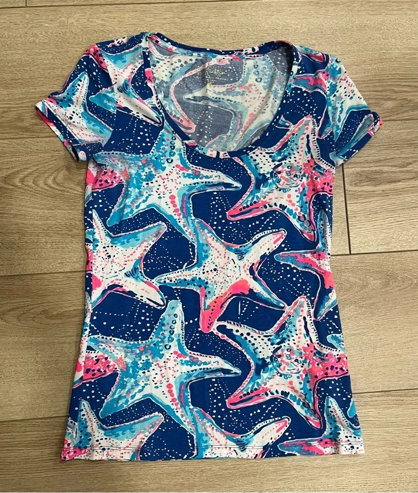 Lilly Pulitzer Dori Tee Blue Pink Starfish Scoop Neck Pima Cotton Size XXS - $15 - From Sarah