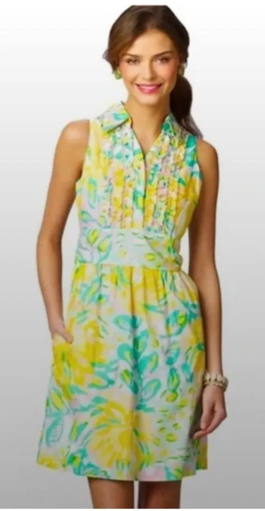 Lilly Pulitzer Essie Shirt Dress Lilly's Pink Lilet Sleeveless Floral Ruffle Size: 6 Buttoned fro... Show more
