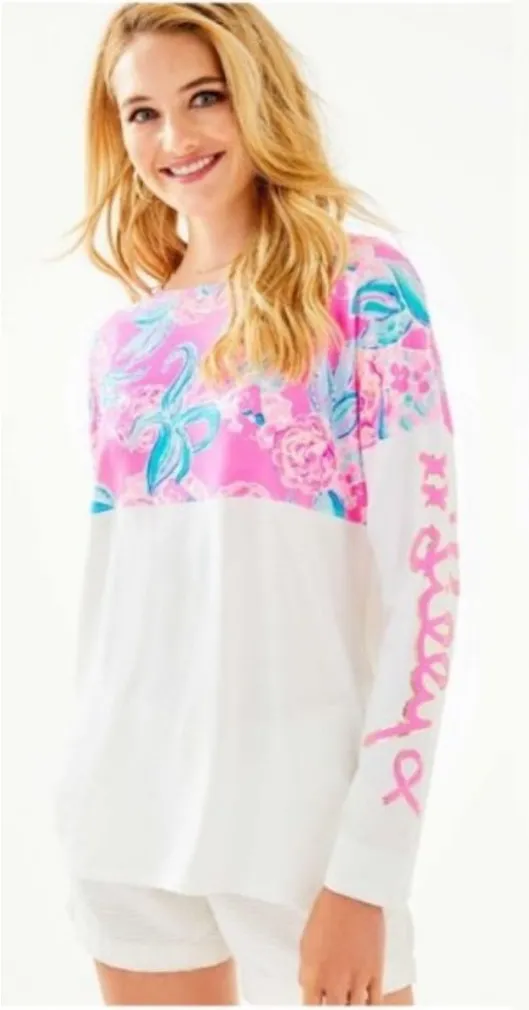 Excellent preowned condition Lilly Pulitzer Finn tee Pinking Positive breast cancer print long sleev... Show more