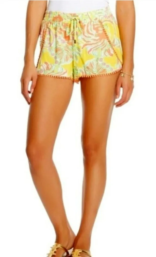 Lilly Pulitzer for Target Happy Place Yellow Orange Challis Pompom Shorts Size S - $26 - From US