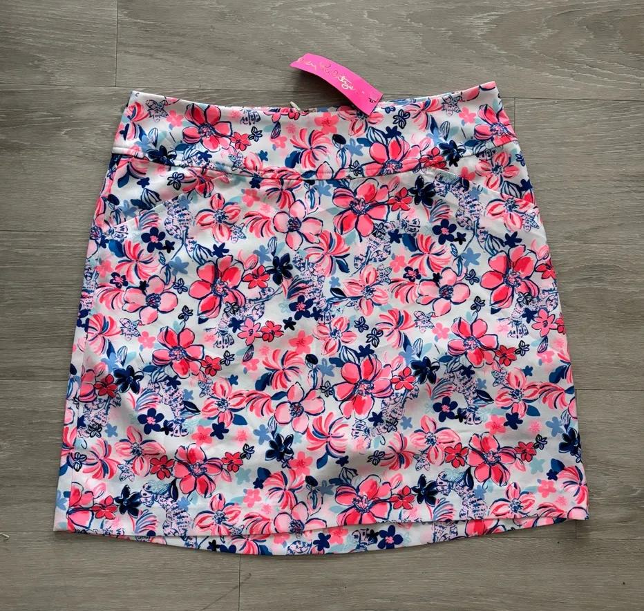 Preppy, feminine, floral-print skort perfect for vacation, resort, golf, or beach. High-waisted, str... Show more