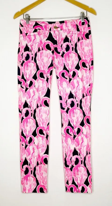 Stylish pink and black patterned pants. Eye-catching design. Lilly Pulitzer Kelly Ankle Skinny Pant... Show more