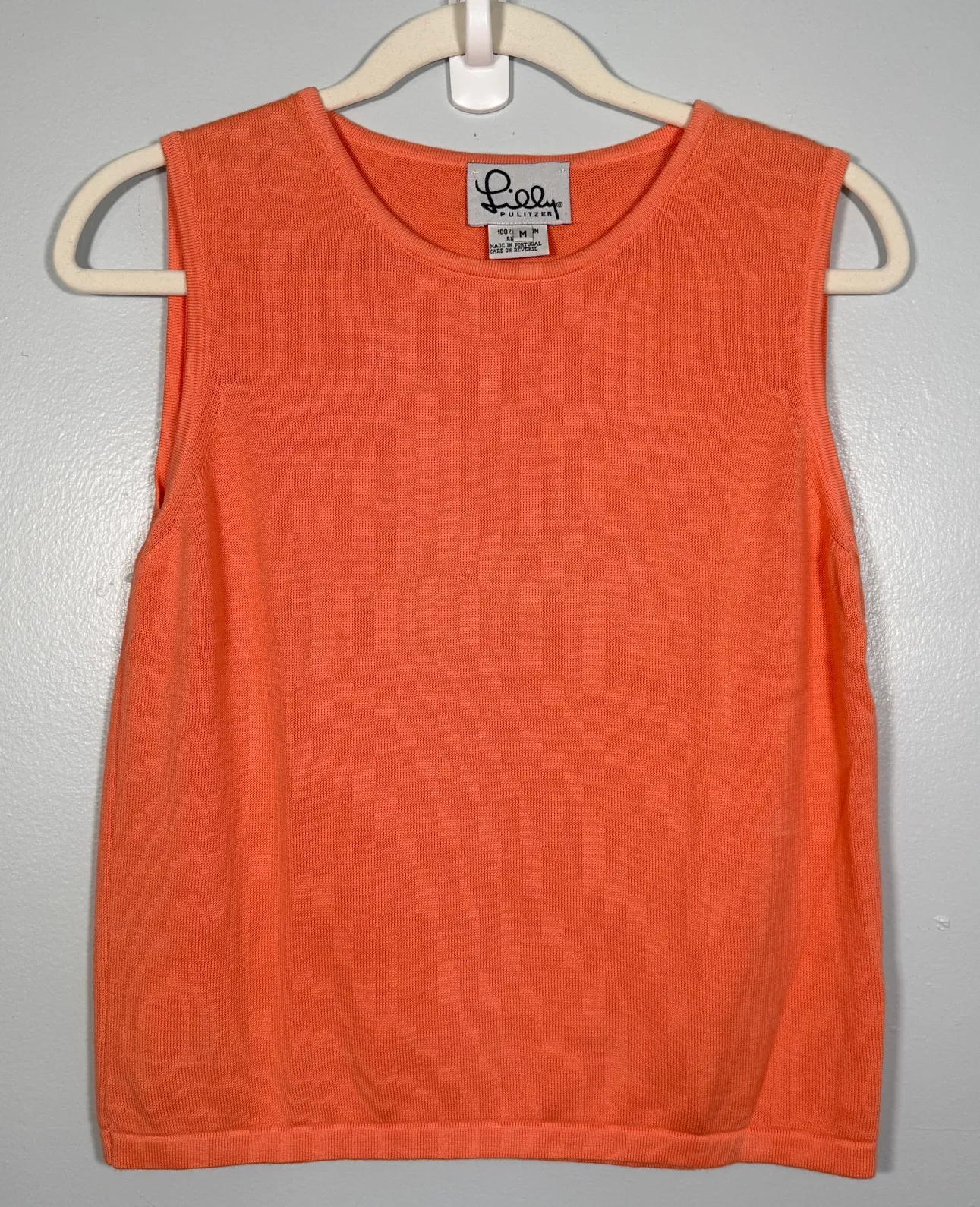 Lilly Pulitzer sleeveless knit tank in a bright coral-orange. Size Medium. Made in Portugal and craf... Show more